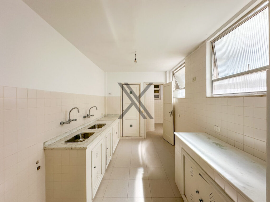 A cozinha possui bom tamanho e muitas possibilidades de customização. A área de serviço é separada da cozinha e oferece acesso à uma dependência completa para funcionários.